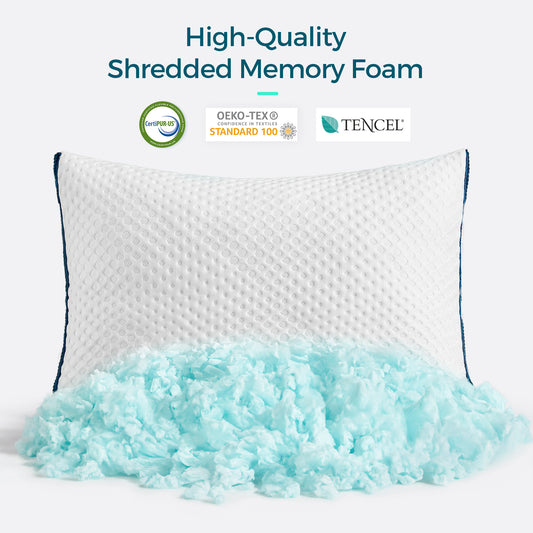 Shredded Memory Foam Pillow, Gel Infused Pillow with Tencel™ Washable Cover
