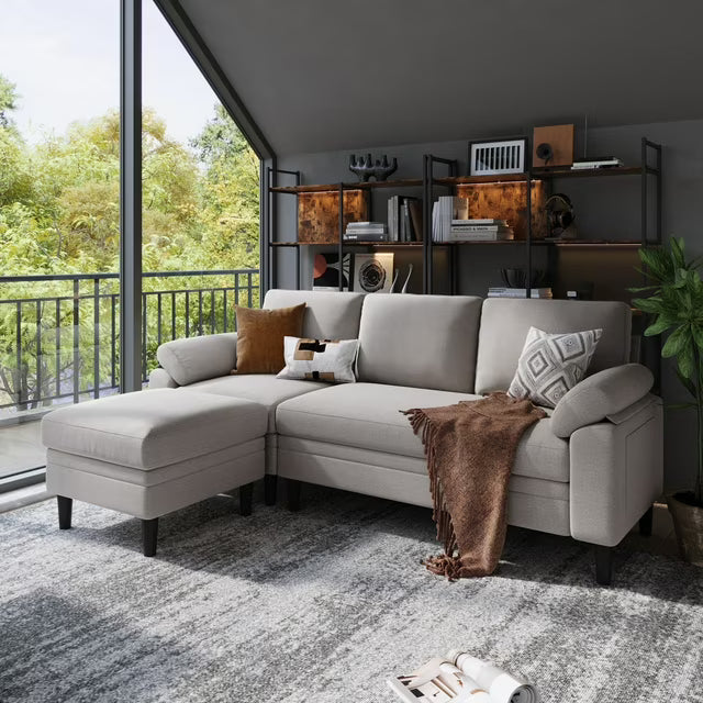 -Item Name: LINSY HOME 82" Reversible Sectional Sofa Couch, 3 Seater L -Shaped Sofa with Movable Ottoman for Living Room