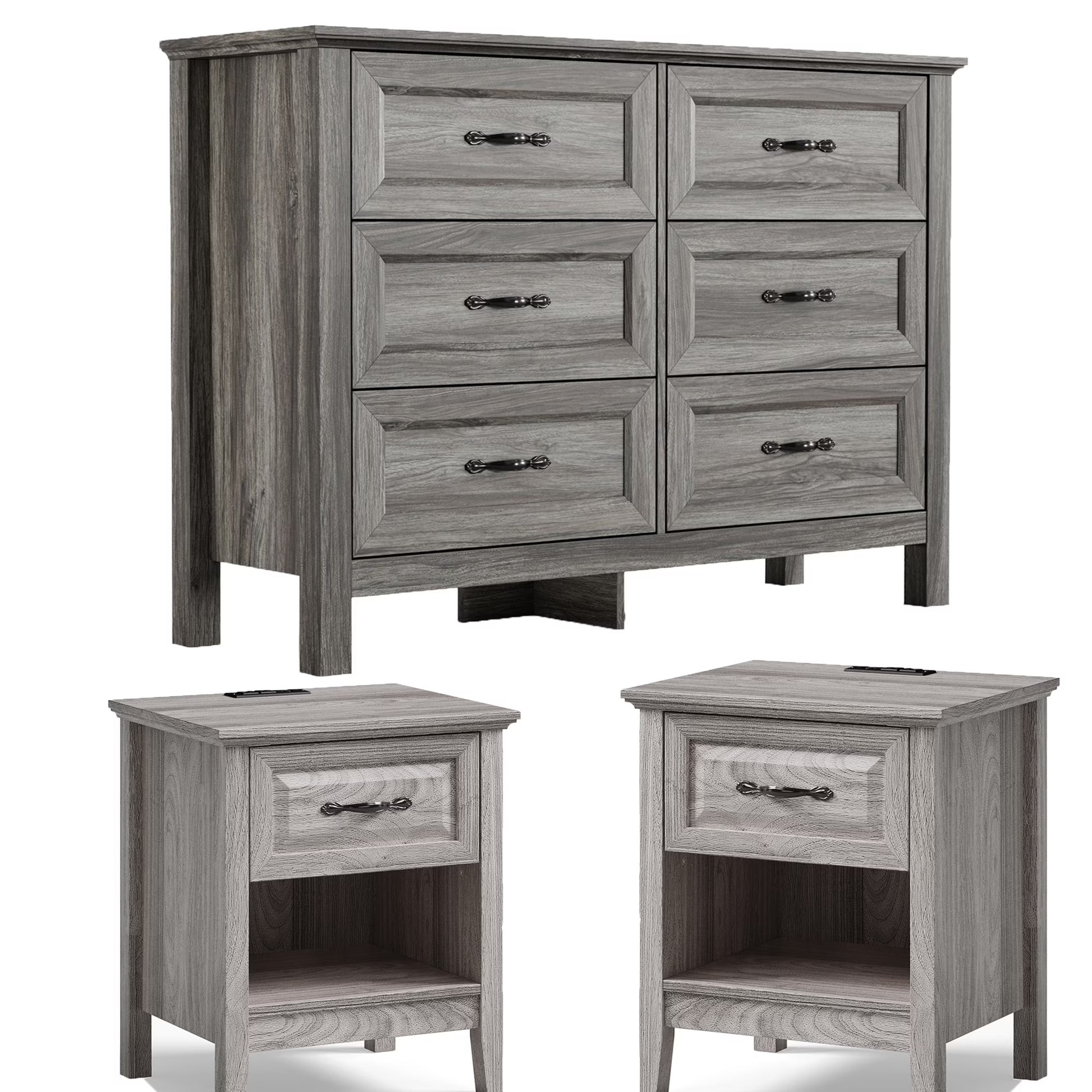 Item Name: LINSY HOME 3-Piece Bedroom Furniture Set – 6 Drawer Dresser & 2 Nightstands with Charging Station